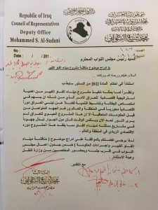 وقال المكتب الإعلامي للمجلس، في بيان إنه “استنادا لاحكام الدستور المادة (٦١ – ٧ ب) قدم النائب محمد شياع السوداني طلبا موقعا من 25 نائبا لمناقشة موضوع تنفيذ مشروع ميناء الفاو الكبير في أحدى جلسات البرلمان، وبحضور المختصين من وزارة النقل وهيئة الاستثمار”.