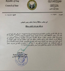 بالوثيقة.. القضاء الاداري يوقف اجراءات انتخاب محافظ جديد لواسط