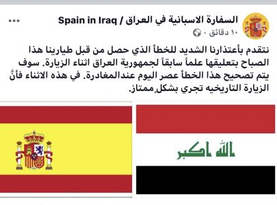 شهدت مراسم زيارة ملك إسبانيا فيليب السادس للعراق، والتي تعد الأولى منذ أربعة عقود، اليوم الأربعاء، خطأ فادحا.