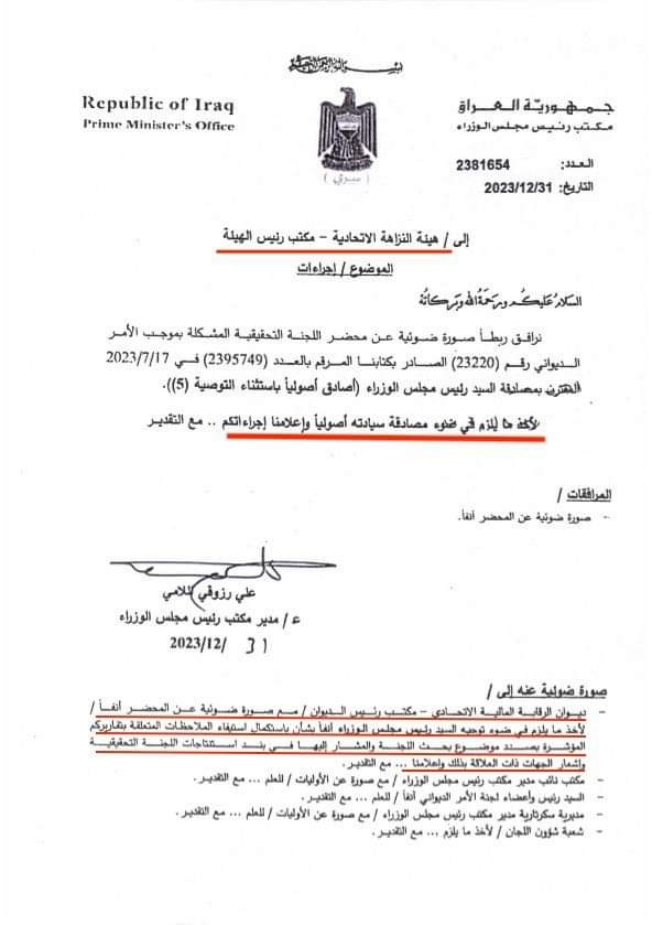 السوداني يحيل محافظ المثنى إلى هيئة النزاهة بسبب ملفات الفساد وتضخم الاموال (وثائق) الأربعاء, 31 يناير 2024, 12:18 محليات, يحدث الان بناء على شكوى النائب محمد رسول الرميثي رئيس الوزراء يحيل محافظ المثنى احمد منفي جودة الى هيئة النزاهة و ديوان الرقابة المالي بسبب ملفات الفساد وتضخم الاموال. تابعونا عبر تليغرام