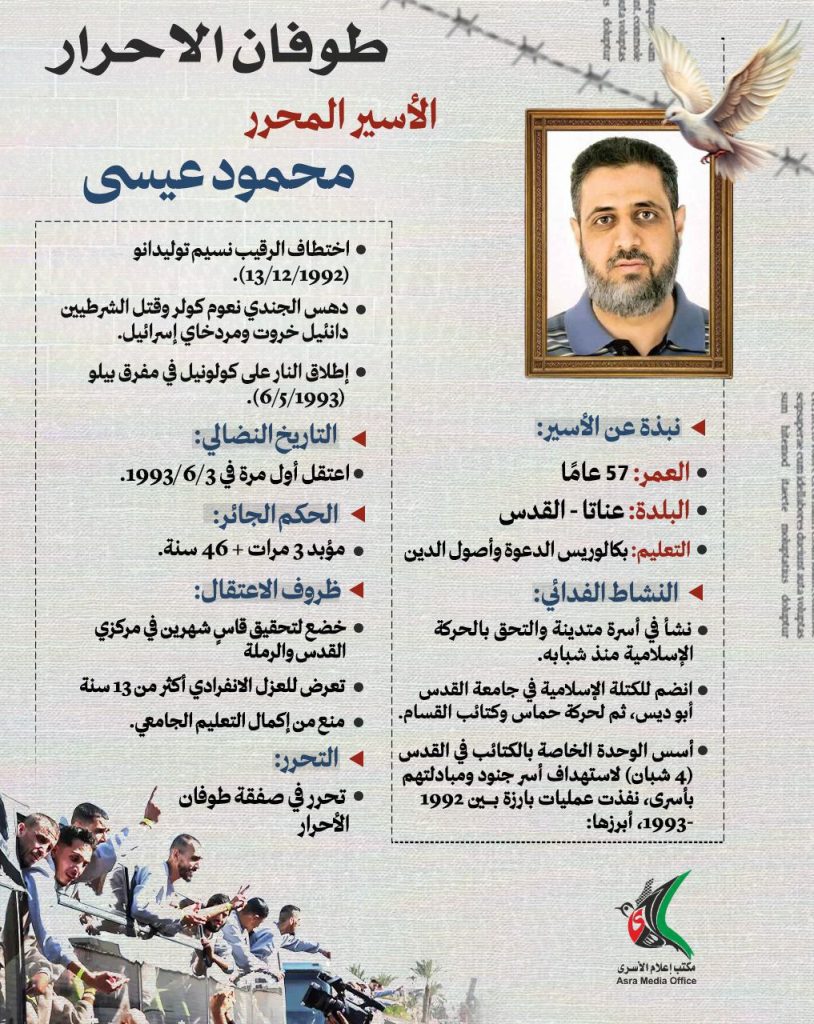 شهدت صفقة تبادل الأسرى بين “حماس” وإسرائيل الإفراج عن محمود عيسى المعروف باسم “أبو البراء”، الذي يعتبر “أخطر” قائد في “كتائب القسام” ومؤسس أول نواة عسكرية للكتائب في القدس.