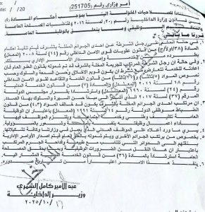 وبحسب وثيقة اطلعت عليها، ” اخر الاخبار “، اليوم الأربعاء (22 تشرين الأول 2025)، فإن “وزير الداخلية حدد ضوابط إعادة المنتسبين والموظفين المدنيين في الوزارة إلى الخدمة بعد شمولهم بالعفو العام”، مؤكدةً أن المشمول بالعفو في قضية مخلة بالشرف لا يُعاد إلى الخدمة”.