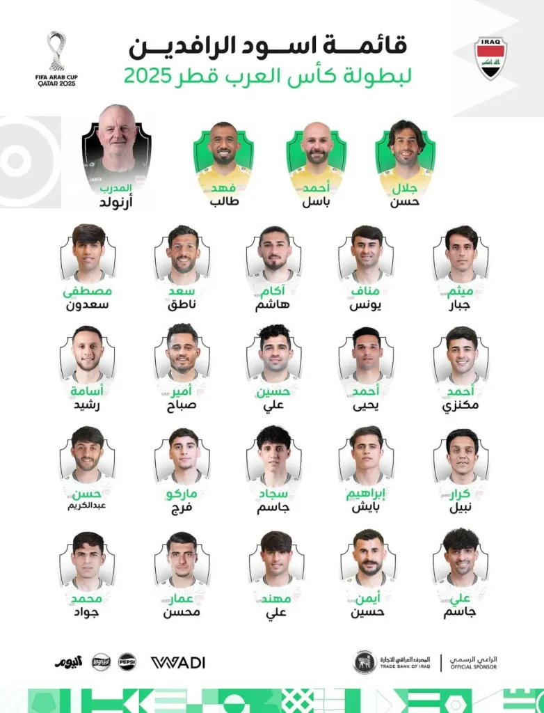 أعلن مدرب المنتخب العراقي غراهام أرنولد، يوم الأحد، قائمة المنتخب لبطولة كأس العرب فيفا 2025 المقررة في قطر.