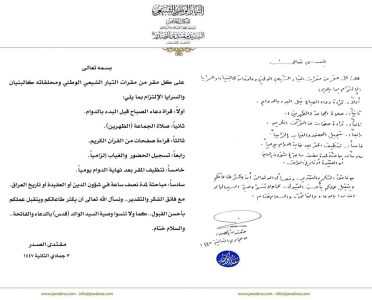 السيد الصدر يصدر توجيهات ” ملزمة ” الى مقرات التيار الوطني الشيعي بما فيها البنيان المرصوص والسرايا الثلاثاء, 25 نوفمبر 2025, 11:51 محليات, يحدث الان اصدر السيد مقتدى الصدر ، جملة توجيهات ” ملزمة ” الى جميع مقرات التيار الوطني الشيعي بما فيها البنيان المرصوص وسرايا السلام. تابعونا عبر تليغرام