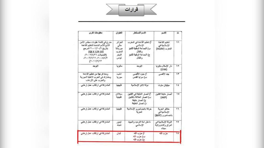 بالوثائق .. الحكومة العراقية تصنّف “حزب الله” اللبناني و”أنصار الله” كجهات إرهابية