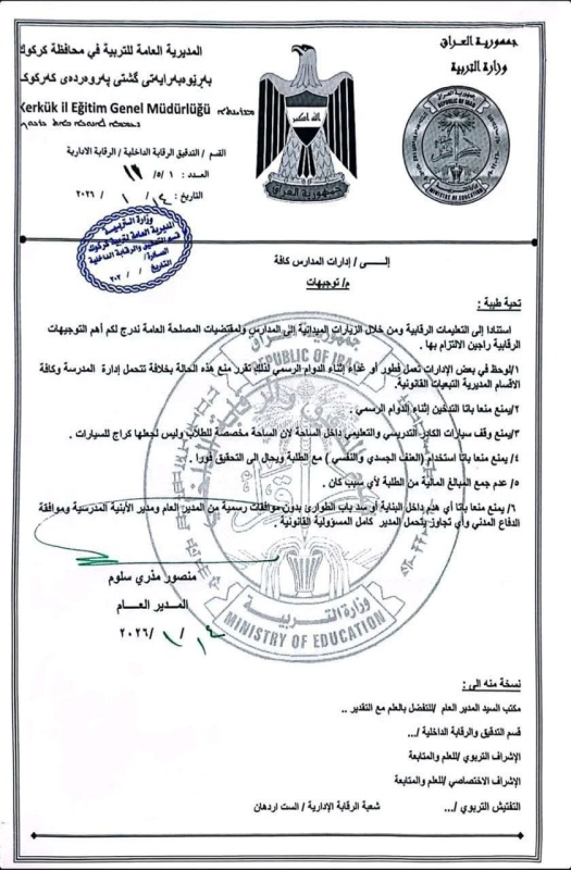 وبحسب وثيقة صادرة عن الوزارة وحصلت عليها ” اخر الاخبار “، أن أي مخالفة ستتحمل إدارات المدارس التبعات القانونية، مؤكدة أهمية الالتزام بالتعليمات حفاظًا على سلامة الطلاب والانضباط المدرسي.