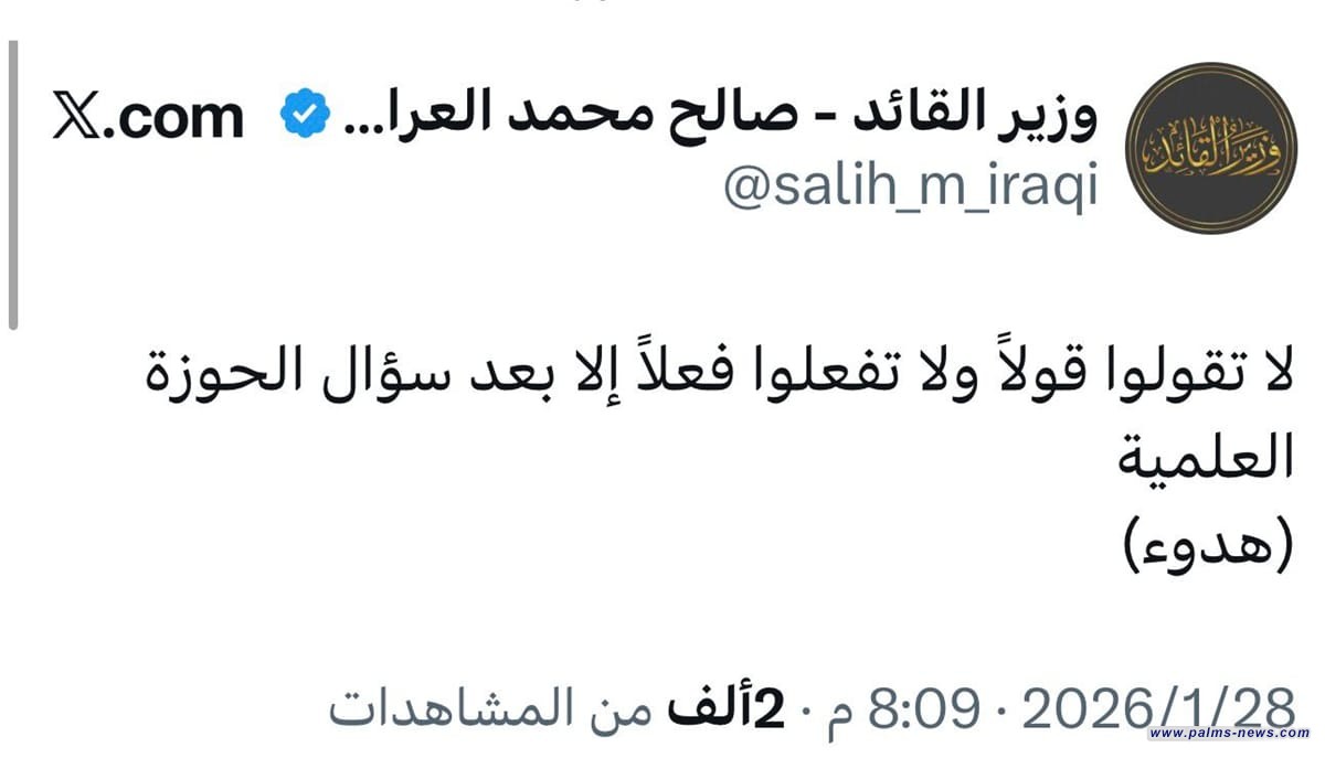 ونشر العراقي التدوينة التي اطلعت عليها وكالةًاخر الاخبار “لا تقولوا قولاً ولا تفعلوا فعلاً إلا بعد سؤال الحوزة العلمية”. واختتم التدوينة بكلمة “هدوء”.