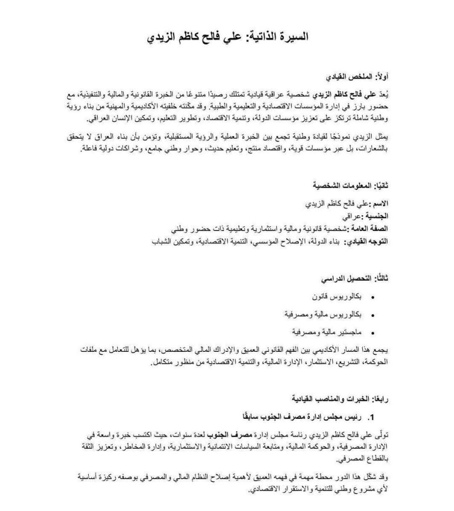 حصلت وكالة ” اخر الاخبار ” على معلومات حول السيرة الذاتية لمرشح الإطار التنسيقي لمنصب رئيس مجلس الوزراء علي الزيدي، الذي جرى اختياره اليوم الاثنين رسمياً لتشكيل الحكومة المقبلة.